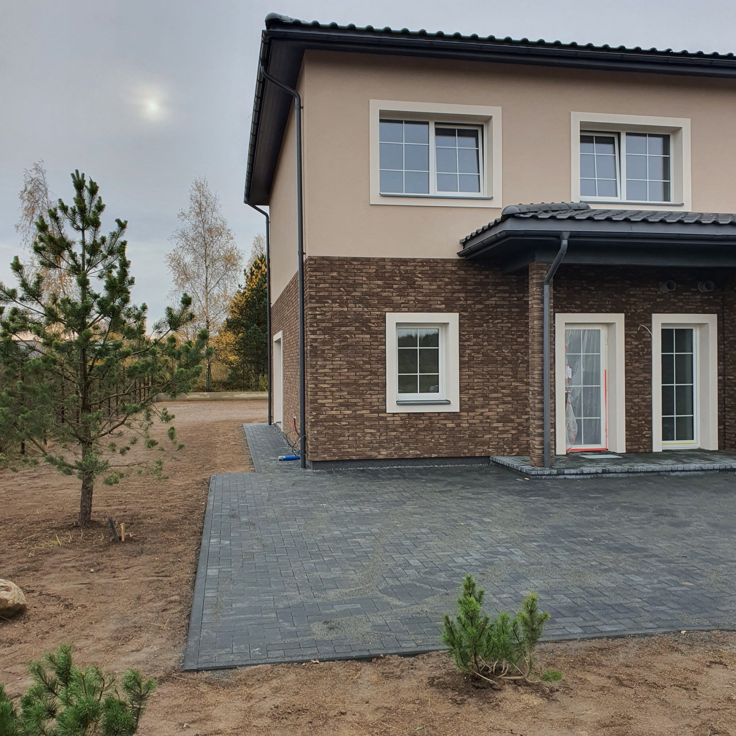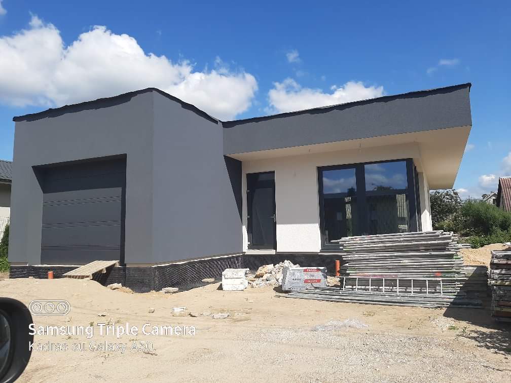 Paskutinis etapas – išlyginto ir išdžiūvusio paviršiaus gruntavimas bei pasirinkto dekoratyvinio tinko (silikoninio, akrilinio ar kt.) dengimas, suteikiant namui norimą spalvą ir tekstūrą.